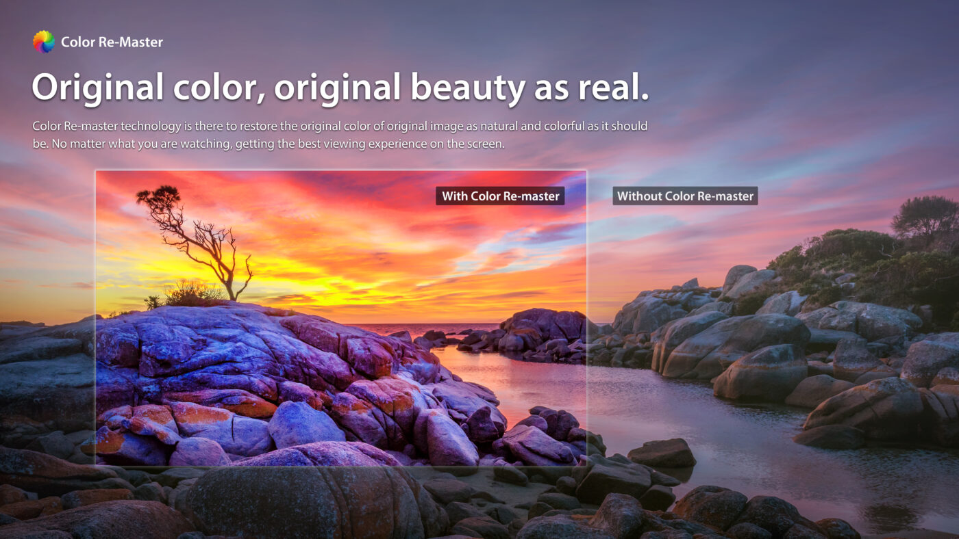 Toshiba’s unique Al upscaling technology provides the near-4K level picture quality for Full HD content. Instead of simply replicating every pixel, it intelligently detects the colors of neighboring pixels and decides the proper color of each pixel by considering the detailed texture of the real sight. No matter what the content is, you can enjoy every scene with the amazing clarity of near-4K quality.