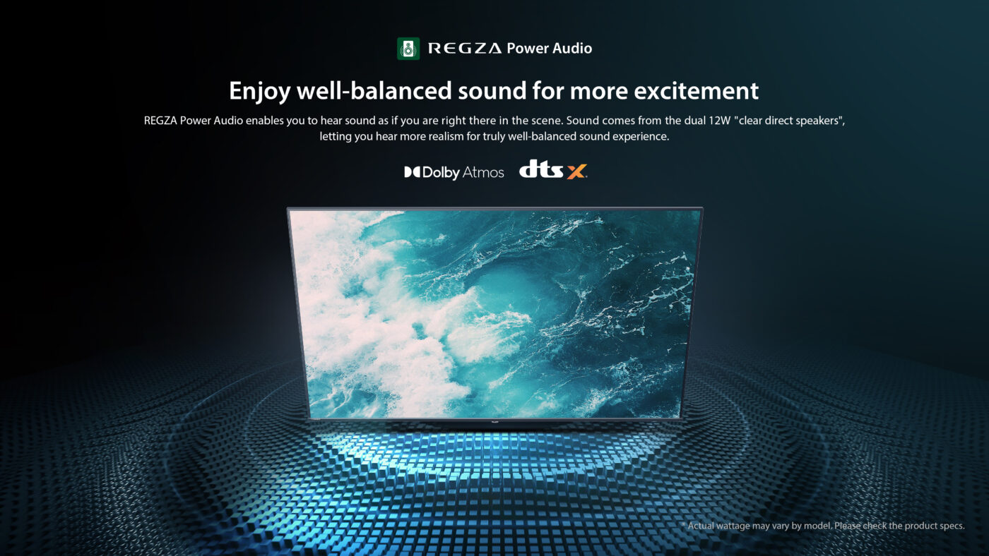 Toshiba’s Quantum Dot Technology creates vivid, life like colors. it delivers over a billion shades of color that stay realistic. Immerse yourself in an exciting and authentic watching experience, with every detail and nuance heightened.