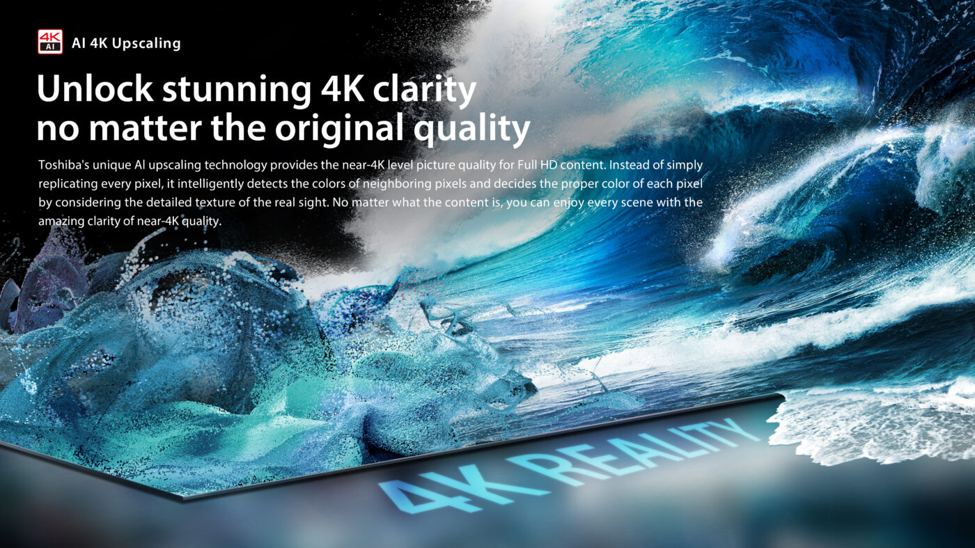 Experience a new world of viewing with REGZA Engine ZR. AI Picture Optimizer* and AI Upscaling bring extreme realism, while Auto View optimizes parameters. Color Re-Master Pro delivers vivid colors and detailed contrast. With meticulous tuning by our experts, REGZA Engine ZR maximizes the potential of the display, backlight, speakers, and audio amplifier. Additionally, its well-trained AI model ensures an unparalleled reality that only picture and sound experts can reproduce.